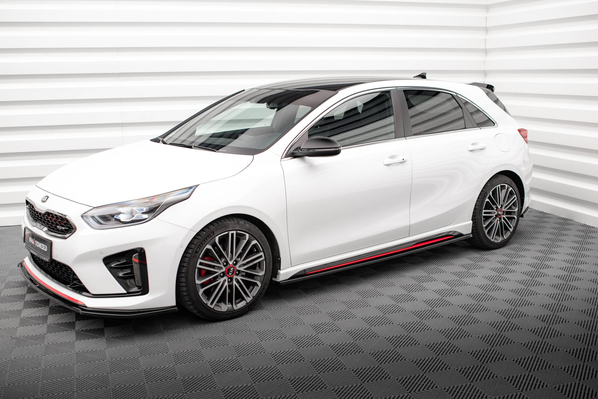 The side skirts diffusers for Kia Ceed GT Mk3 are manufactured from the highest-quality ABS. The material is marked by its sturdiness, flexibility, and resistance to damage and harmful effects of atmospheric conditions. It is universally employed in the production of not only tuning components and elementary vehicle outfitting. The Maxton Design side skirts diffusers have bee given the TUV MATERIALGUTACHTEN certification. They are topped with a special protective layer to secure them from the damaging influence of UV radiation.