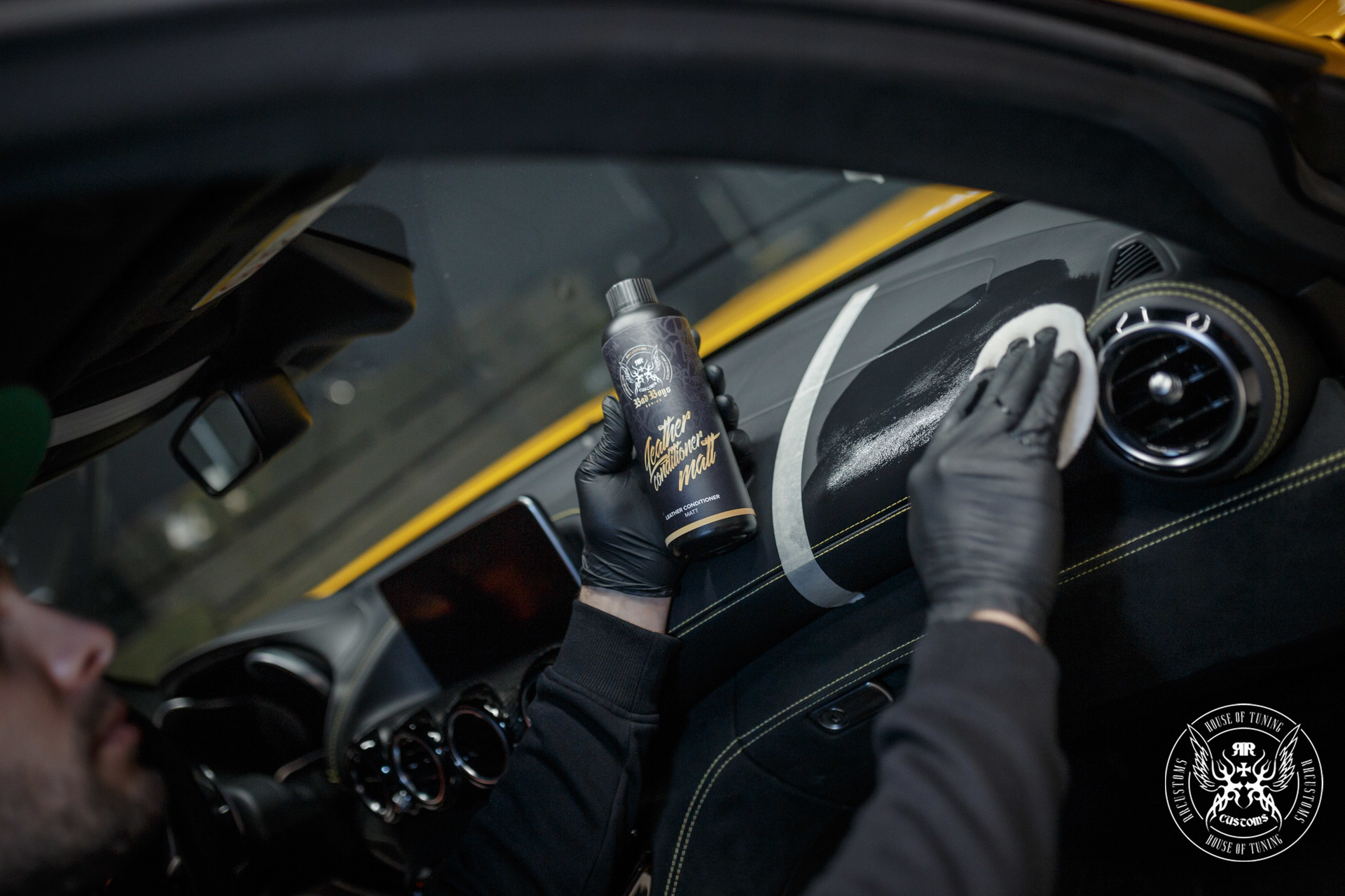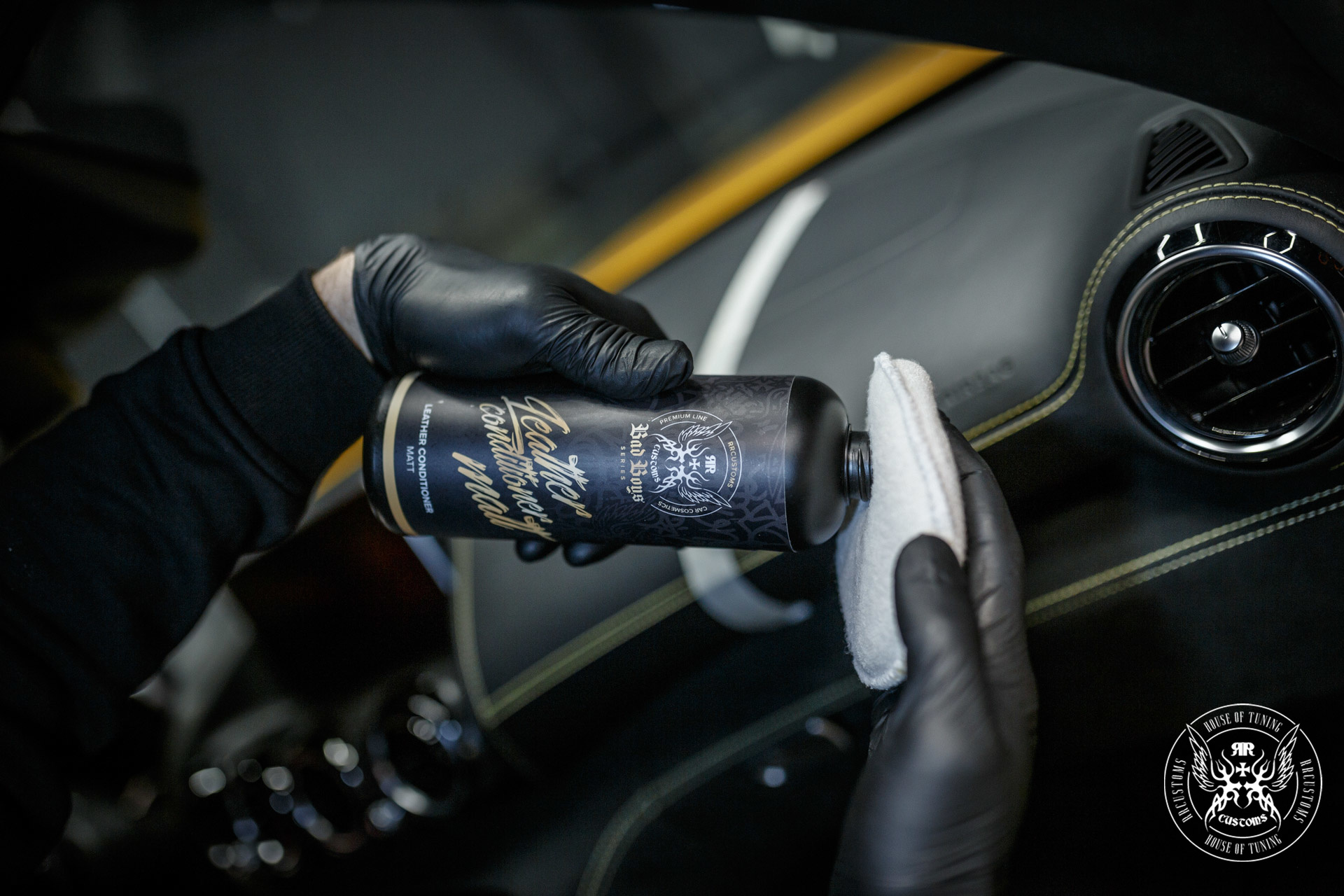 - Antes de aplicar o condicionador, é recomendável limpar a superfície com Leather Cleaner BadBoys